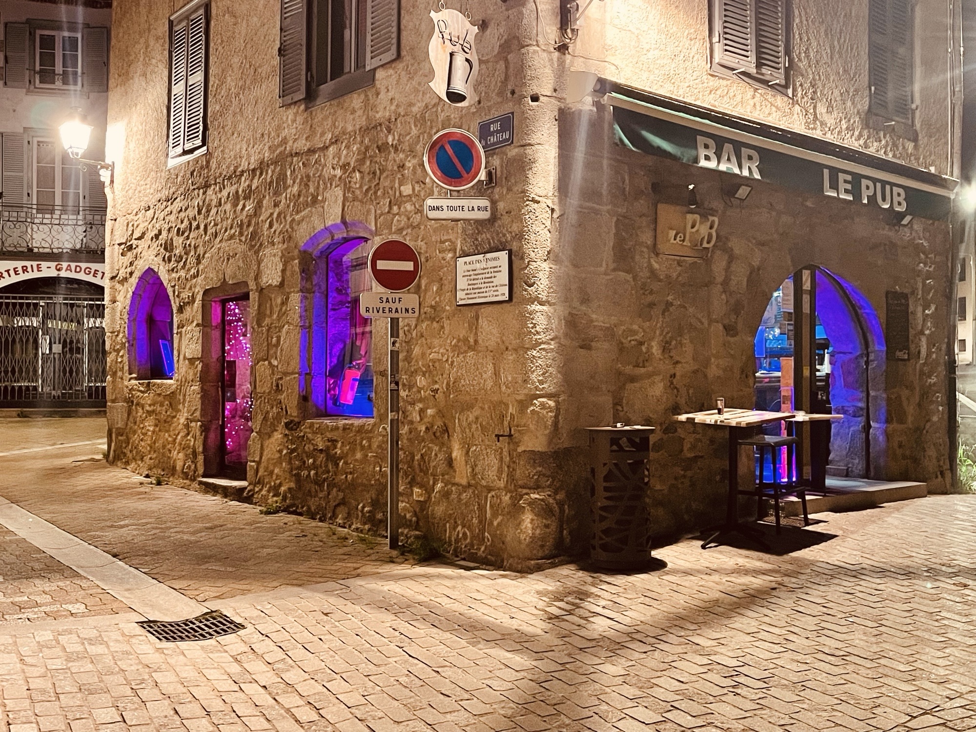 Bar le Pub à Ambert en entrée de rue piétonne et au cœur du centre ville historique, cet établissement chaleureux aux airs de Pub Irlandais vous accueille du mardi au samedi pour un moment loin de vos vies autour d’un verre et avec la possibilité de vous restaurer.
