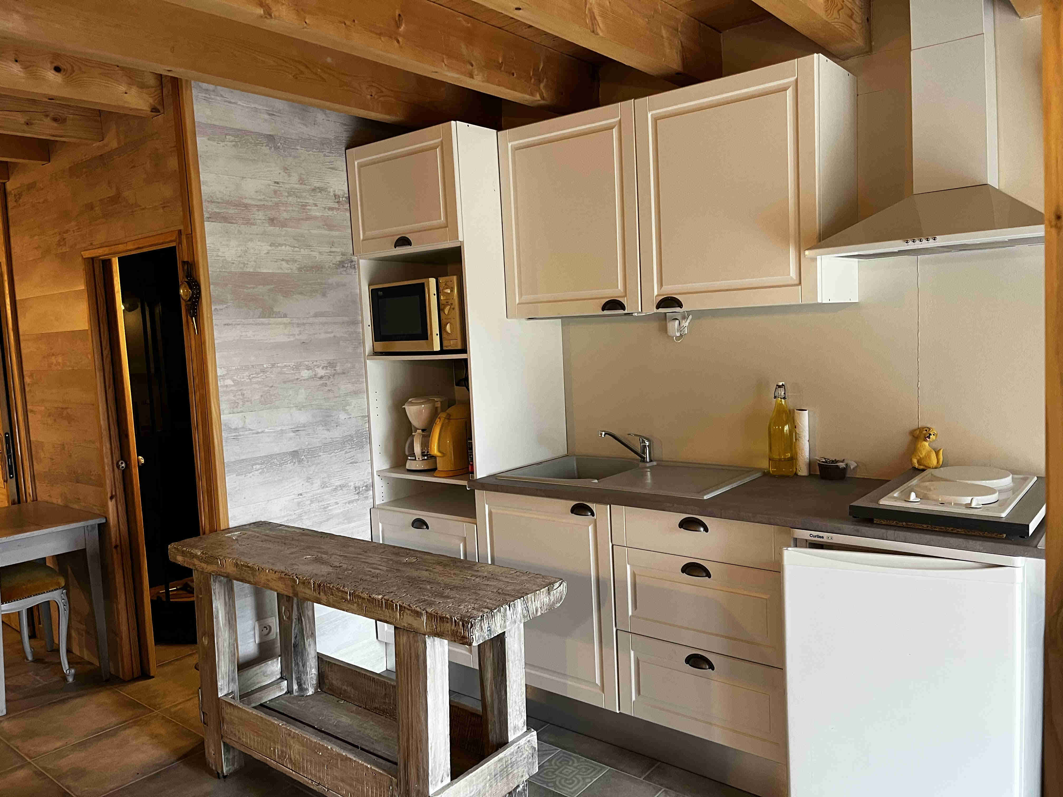 -d’un espace séjour/chambre confortable, avec une cuisine équipée,