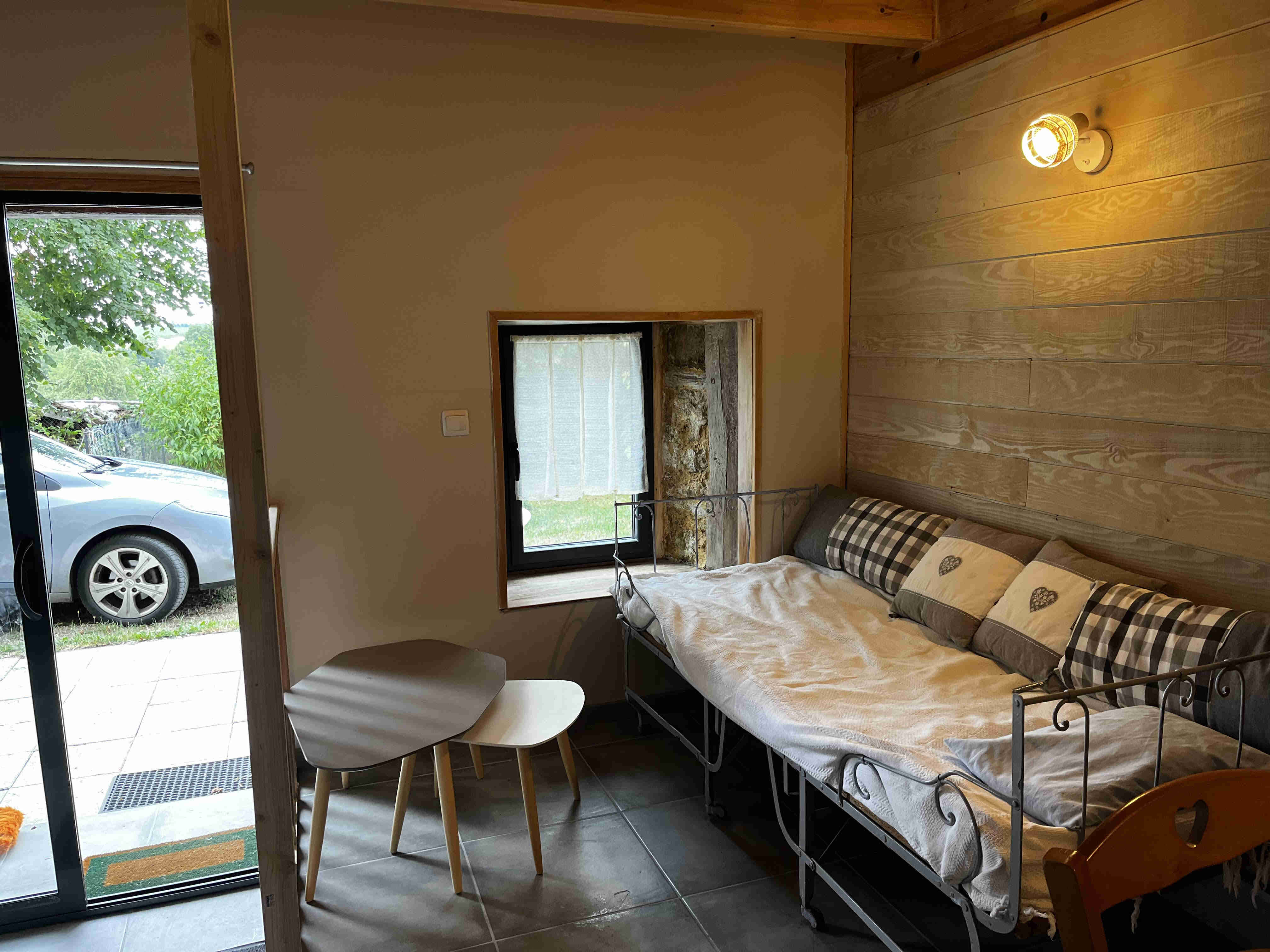 Stationnement possible juste devant le logement. Un espace à proximité permet également de cultiver un petit potager !
