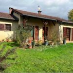 Maison de plein pied orientée sud avec un grand jardin et une terrasse.