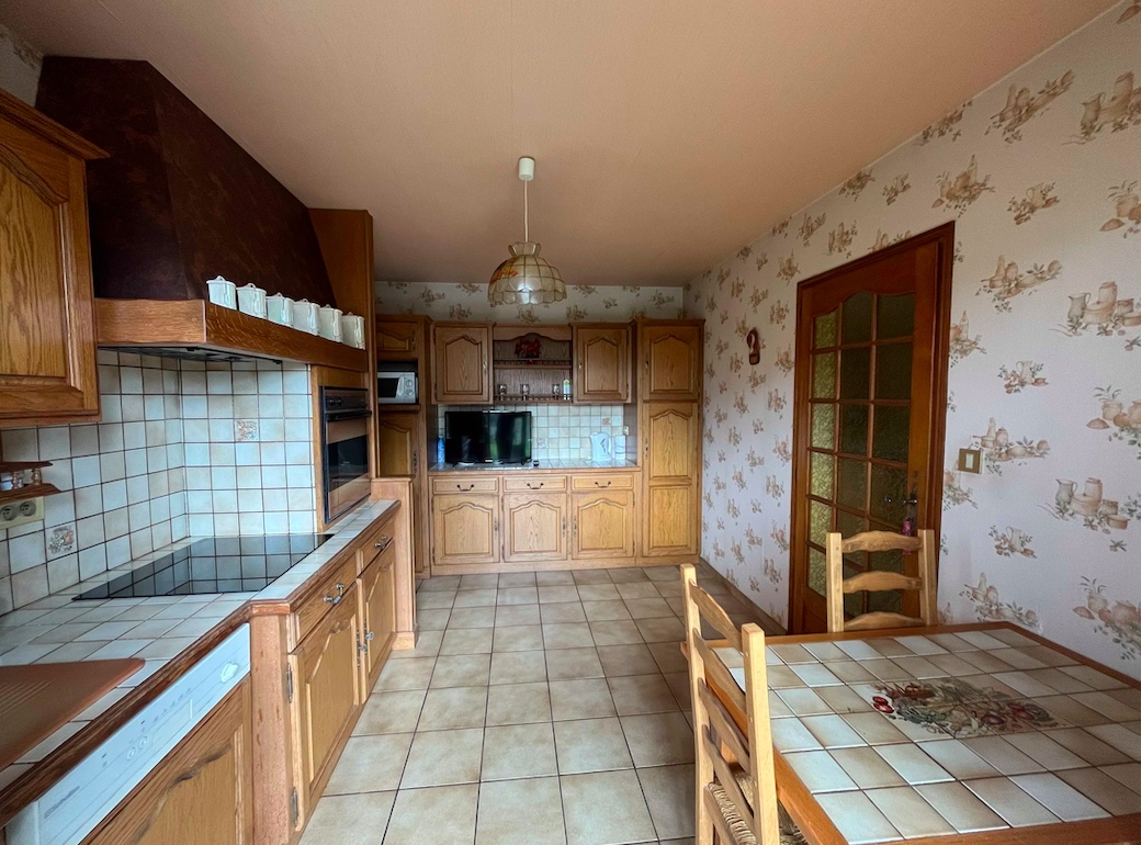 Cuisine équipée: induction, four, cafetière, grille pain, lave vaisselle, lave linge.
